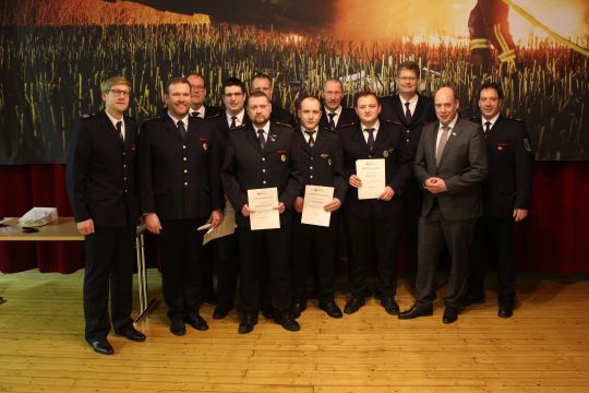 Auf unserer diesjahrigen Jahresdienstbesprechung in der Gemeindehalle Altenrüthen konnten einige Kameraden geehrt werden. Aber neben den Ehrungen wurden einige Kameraden gemäß der Laufbahnverodnung befördert.
