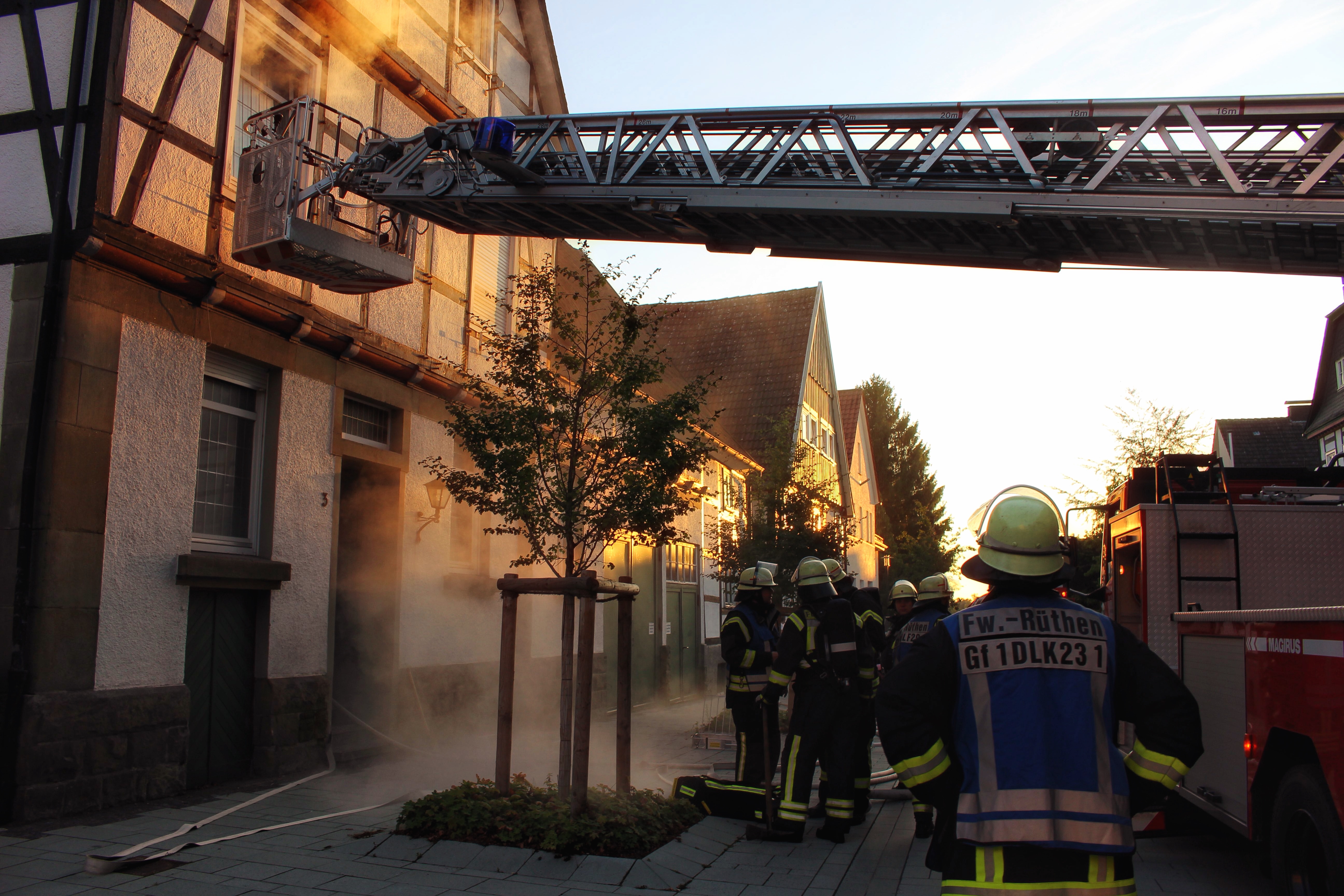 Ein Großaufgebot an Feuerwehr rückte am Mittwochabend in die Rüthener Innenstadt aus. Ein Anwohner der Burgstraße hörte bemerkte im Nachbarhaus einen piependen Rauchmelder und sah, wie schwarzer Rauch aus den Fenstern im Erdgeschoss drang. Auch die vier Bewohner des Einfamilienhauses sind vom Rauchmelder geweckt worden, der Ausgang durch das Treppenhaus war jedoch doch die starke Rauchentwicklung versperrt. Zwei Bewohner konnten sich noch an die Fenster im Dachgeschoss retten, die zwei weiteren wurden im Gebäude vermisst. „Mit Dummys lassen sich schon realitätsnahe Übungsszenarien gestalten, mit Personen, die aber um Hilfe schreien, steigt auch der Stresspegel der Kameraden bei Übungen.“
