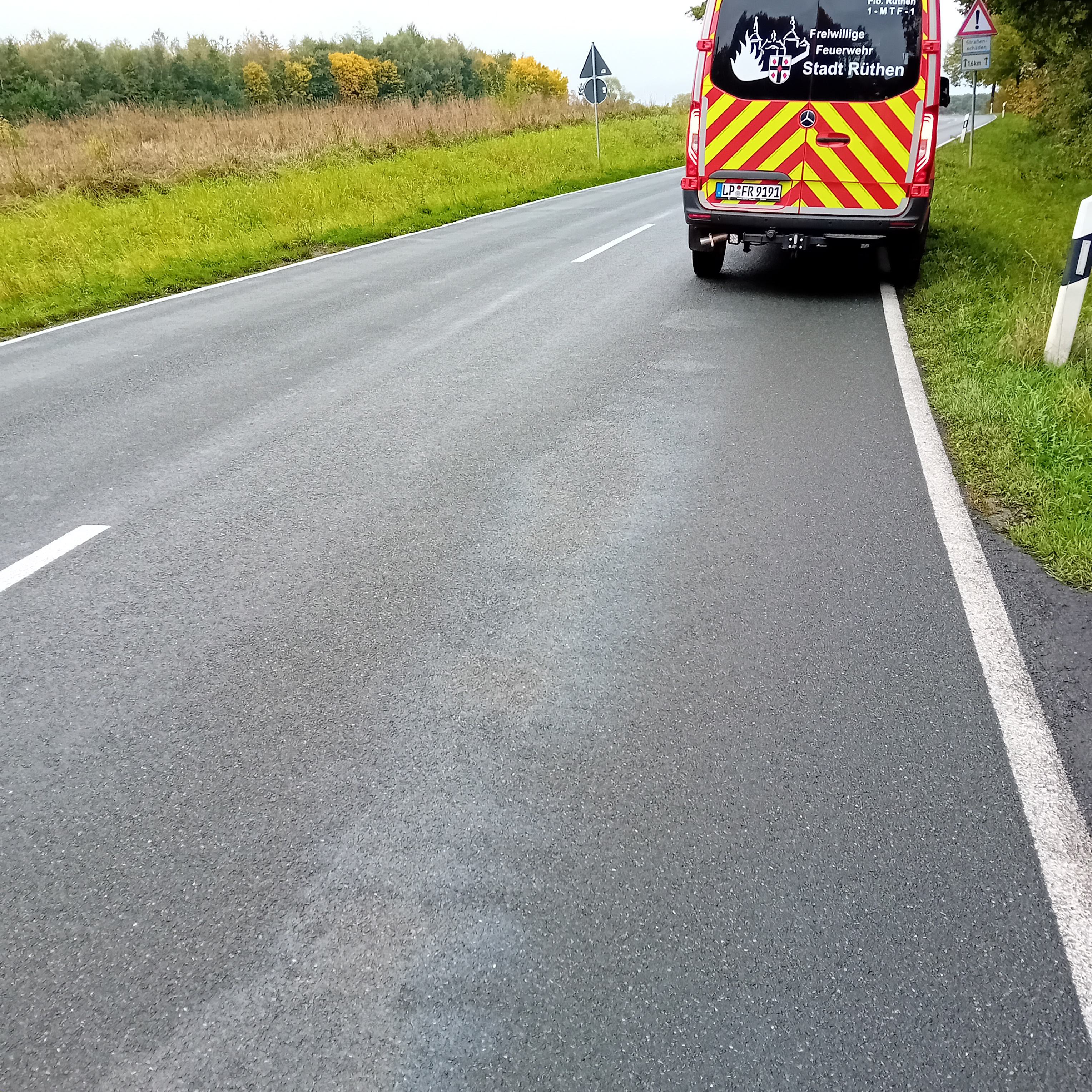 Eine weitere Dieselspur im Stadtgebiet Rüthen rief diesmal die Löschgruppen Rüthen und Drewer auf den Plan. Auf einer Länge von mehreren Kilometern war eine Dieselspur im Kattensiepen bis in das Stadtgebiet Warstein hinein vorhanden. Nach Absprache mit dem Ordnungsamt der Stadt Rüthen entschied sich der Einsatzleiter zur Beseitigung dieser Spur ein Spezialunternehmen anzufordern. Bis zum Eintreffen des Unternehmens sicherte die Löschgruppe Drewer die Einsatzstelle im Kattensiepen ab. |