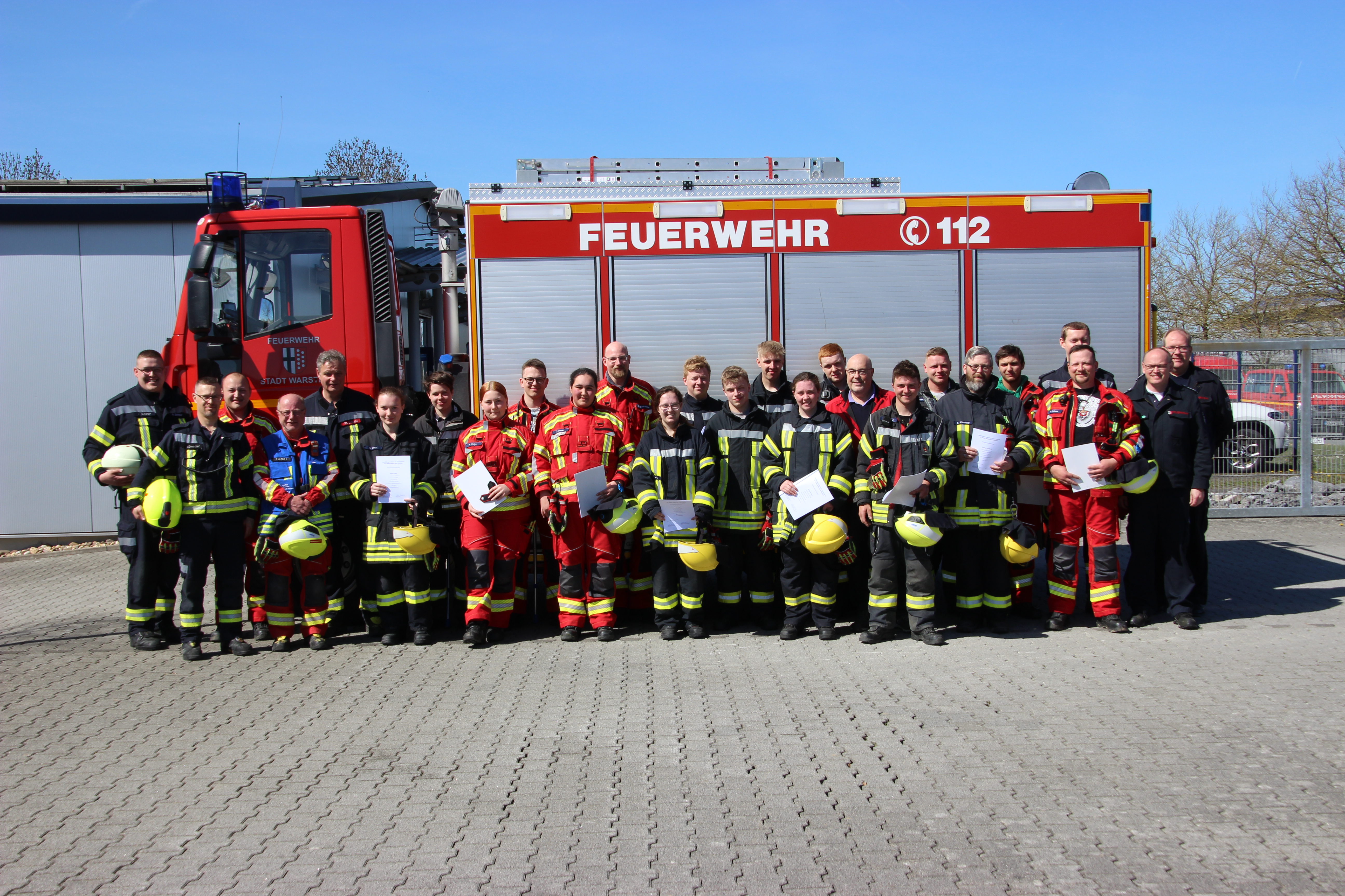 Am 05.07.2025 fand in Meiste die feierliche Fahrzeugübergabe unserer neuen Fahrzeuge statt. Dabei wurden der GW-L2 und die drei neuen MTF`S offiziell an die Löschgruppen der Feuerwehr Rüthen übergeben. Die MTF`S erhielten die Löschgruppen Drewer, Rüthen und die Löschgruppe Meiste/Kneblinghausen. Der GW-L2 wurde an die Löschgruppe Meiste/Kneblinghausen übergeben, und erweitert die Einsatzmöglichkeiten der Kameraden. Das bisherige TSF-W aus Meiste/Kneblinghausen erhält in einem Ringtausch die Löschgruppe Drewer. Zahlreiche Gäste waren der Einladung zu dieser Veranstaltung gefolgt, da an diesem Tag auch 100 Jahre Feuerwehr in Meiste gefeiert wurde. Mit diesem GW-L2 und den Mannschaftstransportfahrzeugen wurden moderne Fahrzeuge in Dienst gestellt. Mit diesen Fahrzeugen kann nun noch effektiver und schneller Hilfe geleistet werden, da sie ein hohes Maß an Flexibilität haben. So können bei den MTF`S binnenkurzer Zeit die einzelnen Sitze im Fahrzeug ausgebaut werden, und Dank des Allradantiebes können damit auch Stellen in unwegsamen Gelände erreicht werden. Auf dem GW-L2 sind neben einer Standardbeladung im vorderen Teil des Aufbaus hinten auf der Ladefläche verschiedene Rollcontainer verlastet. Diese können zeitnah über eine Ladebordwand entladen werden, so das gegebenenfalls andere Container transportiert werden können. Nähere Einzelheiten findet Ihr in der Rubrik "Fahrzeuge".