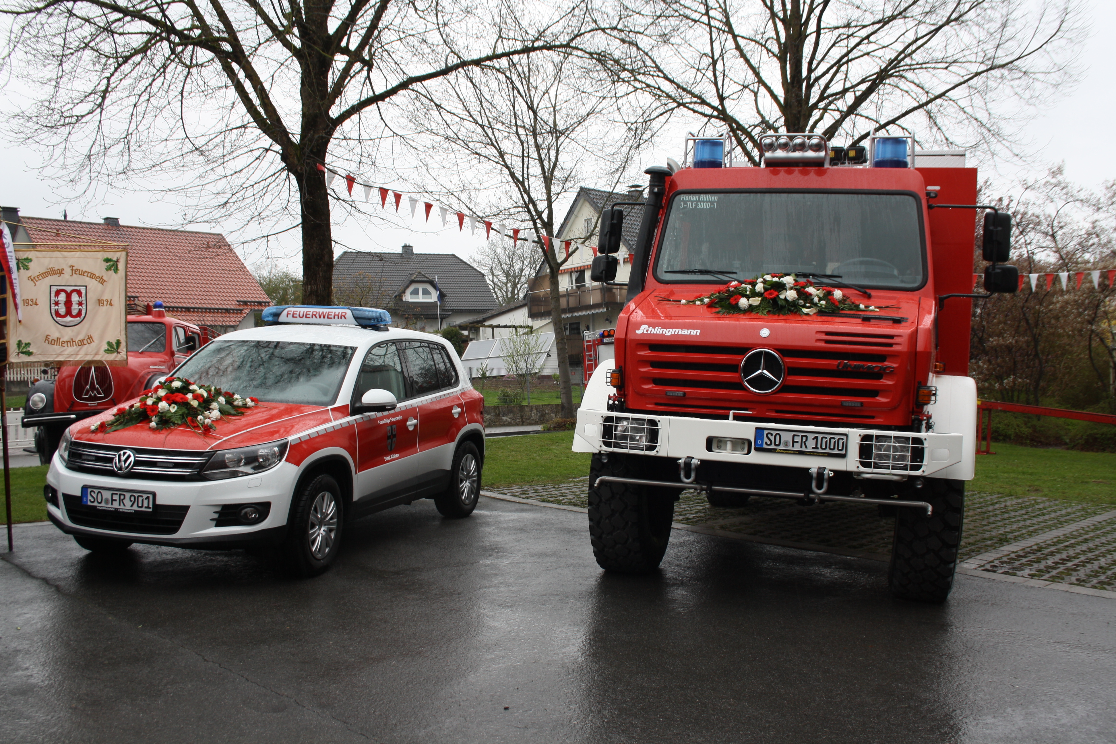 Am vergangenen Samstag wurden zwei neue Fahrzeuge der Feuerwehr Stadt Rüthen eingeweiht. Die Löschgruppe Kallenhardt freut sich über das neue TLF 3000 auf Unimog Basis. Ebenfalls eingeweiht wurde der neue KDOW der Feuerwehr Stadt Rüthen.