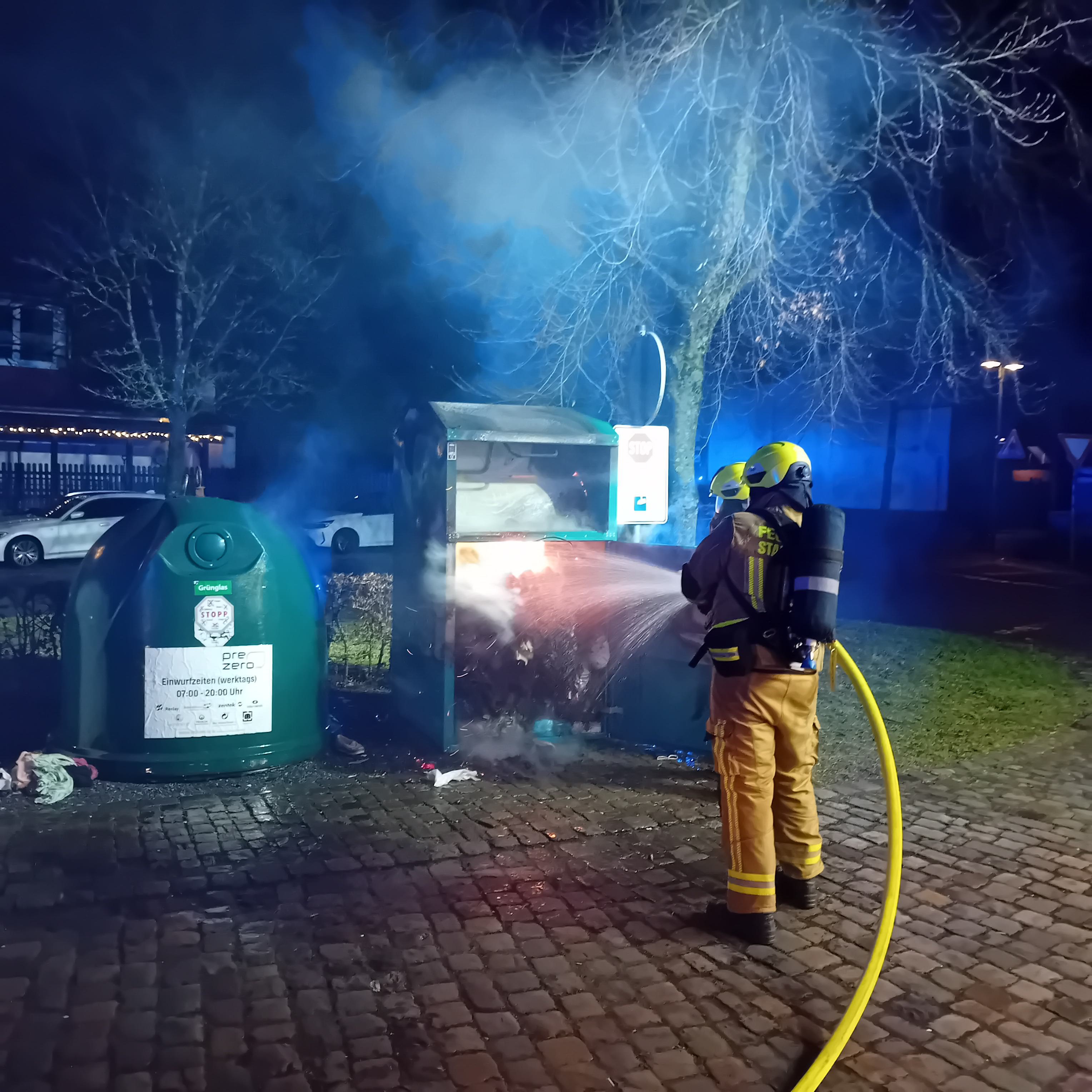 Am Montagmorgen gegen 01.30 Uhr geriet ein Kleidercontainer in der Windpothstraße am dortigen Busbahnhof in Brand. Das Feuer wurde durch einen aufmerksamen Mitbürger bemerkt welcher umgehend die Feuerwehr verständigte. Die alarmierte Löschgruppe Rüthen öffnete diesen Container gewaltsam. Aufgrund der Rauchentwicklung wurde ein Trupp ausgerüstet mit Atemschutz zum öffnen und zum ablöschen der Flammen eingesetzt. Abschließend wurde die Einsatzstelle mit der Wärmebildkamera auf Glutnester abgesucht und an die Polizei übergeben. |